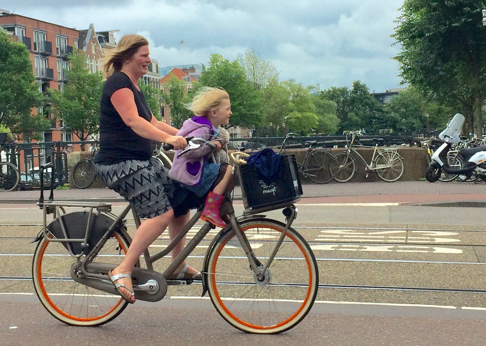 So, imagine my surprise when I arrived in Amsterdam and saw Dutch cyclists riding without helmets, side-by-side, and in normal clothing.