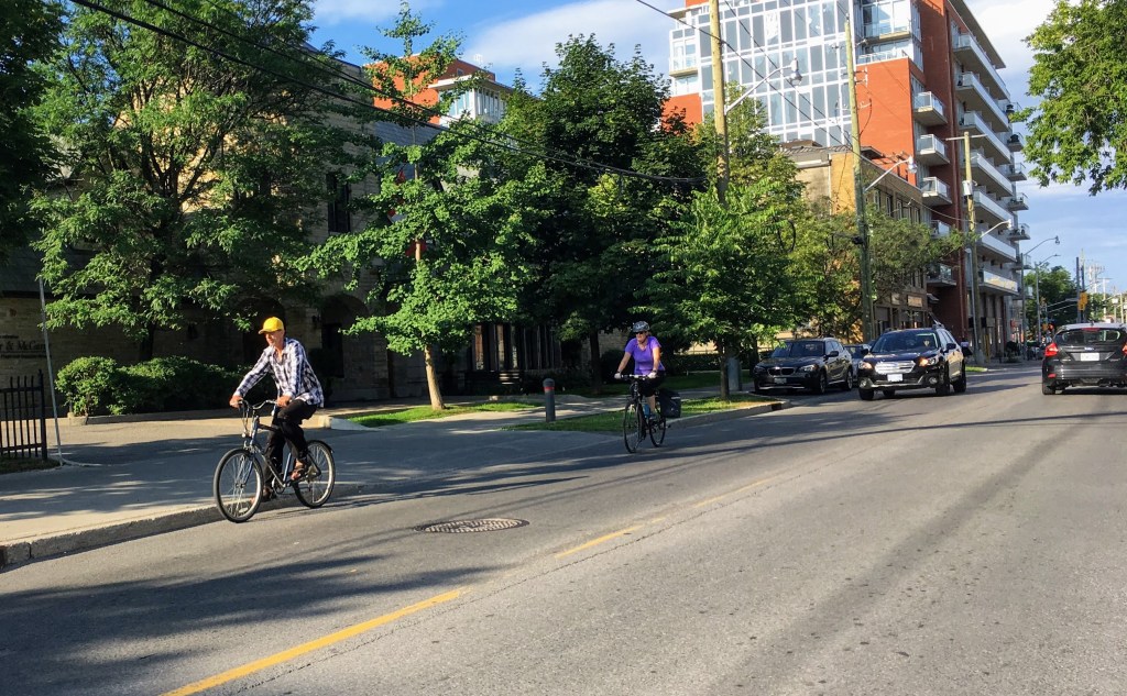 This is the essence of a bicycle street: a street that accommodates both bicycle and motor vehicle traffic but reverses the natural hierarchy and prioritizes the bicycle users. It’s a concept that originated in Germany and has received much experimentation in the Netherlands and elsewhere, and has great potential for use in Canada and the US.