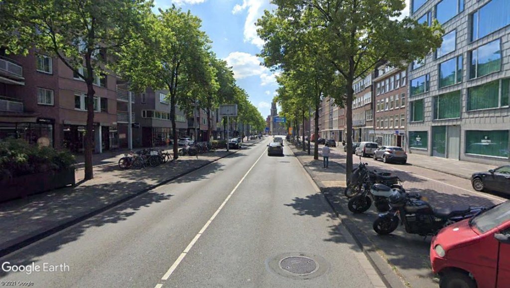 This is my road outside my house. It is a UK “A” class road but, being residential, it has a 30 mph speed limit. Being long and straight and unimpeded by parked cars, driver put their foot down and frequently break the limit. As a cyclist, I try to avoid it because it is not wide enough for two cars to pass and safely give the cyclist clearance. What design mods can I suggest to my local council to make the speed limit ‘self-regulating’, which is the buzzword around here for making it appear more obvious that the speed limit is 30mph.