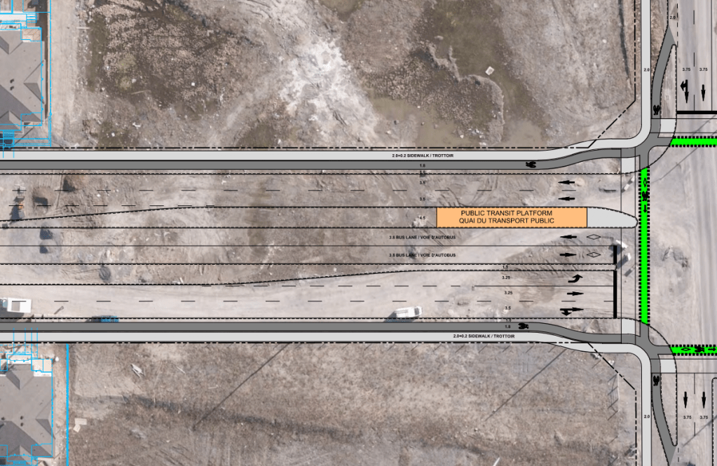 Ottawa has a rich legacy of building grade-separated, bus-only roadways across the city (known as the Transitway), but is in its infancy in designing centre-median running bus rapid transit streets. Chapman Mills Drive serves as the only presently constructed example in the City, though many more are in the planning process, including the Baseline BRT which I’m particularly excited about. The City is currently engaging the public on designs for the Greenbank Road extension, which will be constructed as a new road with BRT, rather than as a future retrofit.