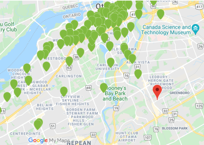 For the first 9 months here (including a full winter) we didn’t own a car, and it was okay. The walk to the Walmart across Bank Street is within reach, but requires crossing a street with 70km/h traffic, followed by a giant parking lot. We still visit downtown, but it’s more of an outing than before and takes up to 40 minutes by transit. There’s some interesting places to walk, but much less so than the grid network downtown and a bridge and rail corridor just north of us act as a major barrier that keeps us from exploring further north. When we wanted a carshare, we had to bike or take transit to get the nearest one over 2.5km away because our community is beyond their service area.