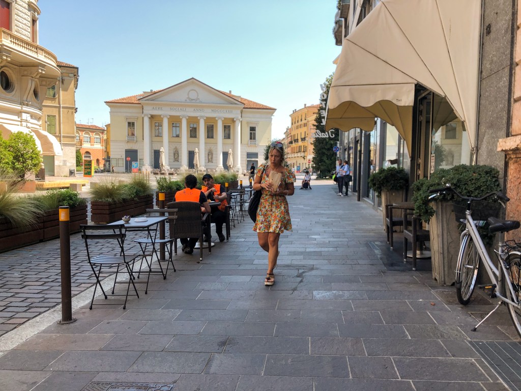 Even on streets where traffic is permitted, it’s so wonderful to see a high level of attention given to the pedestrian experience. I found examples of wide boulevards in both Mantova and Verona that accommodated streetscaping, patios, and a wide walking area with ground-floor storefronts facing the street, plus the generous buffer area from moving vehicles creates a really nice area to walk.