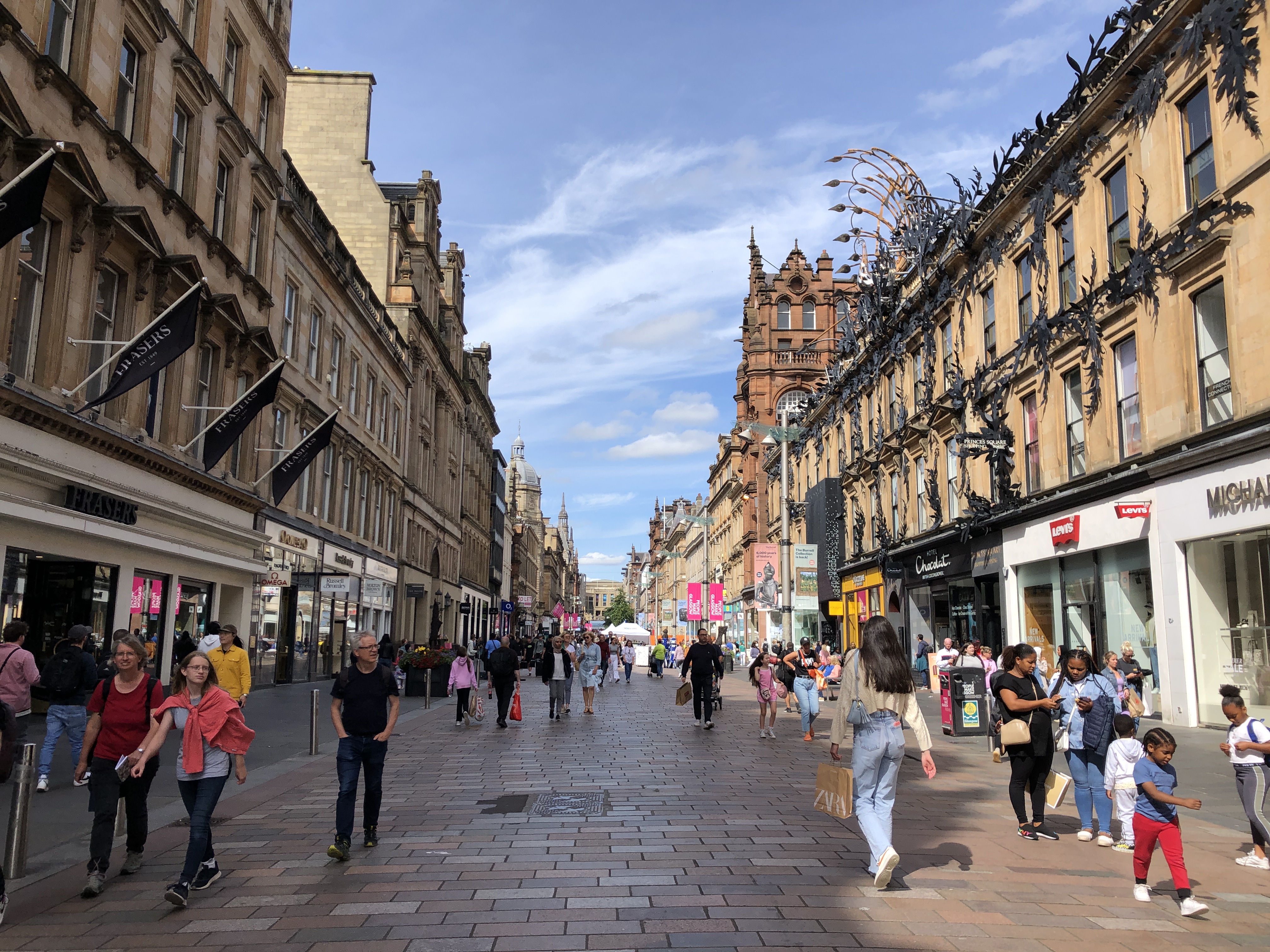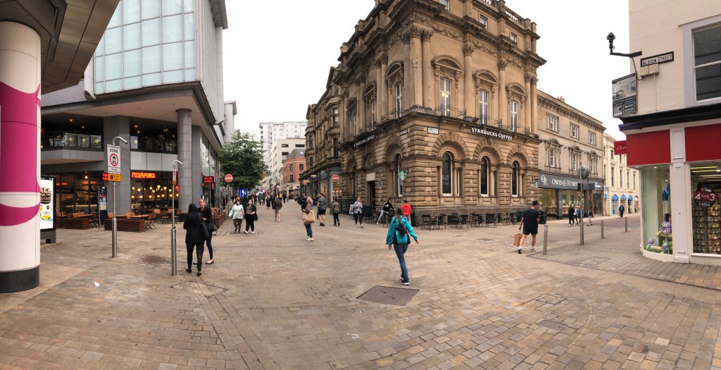 Pedestrianized town centres are a wonderful thing. In the last couple of week’s I’ve experienced these in large cities (Glasgow, 1.8M, Leeds, 800k), a midsized city (Verona, 250k) and a small town (Mantova, 50k). All were thriving, with bustling shopping streets and lively patios, with many people living in and near the centres. While locally pedestrianized areas have been criticized as catering to tourists at the expense of “commerce”, a key success factor seems to be that they all serve locals just as well as tourists. In Mantova, locals were easy to spot as they would arrive by bicycle with shopping bags attached, while in Leeds people seemed more likely to arrive by the vast network of bus services. In all cases, it seemed that wherever you lived in the community, it was easy and convenient to take transit or cycle to these centres.