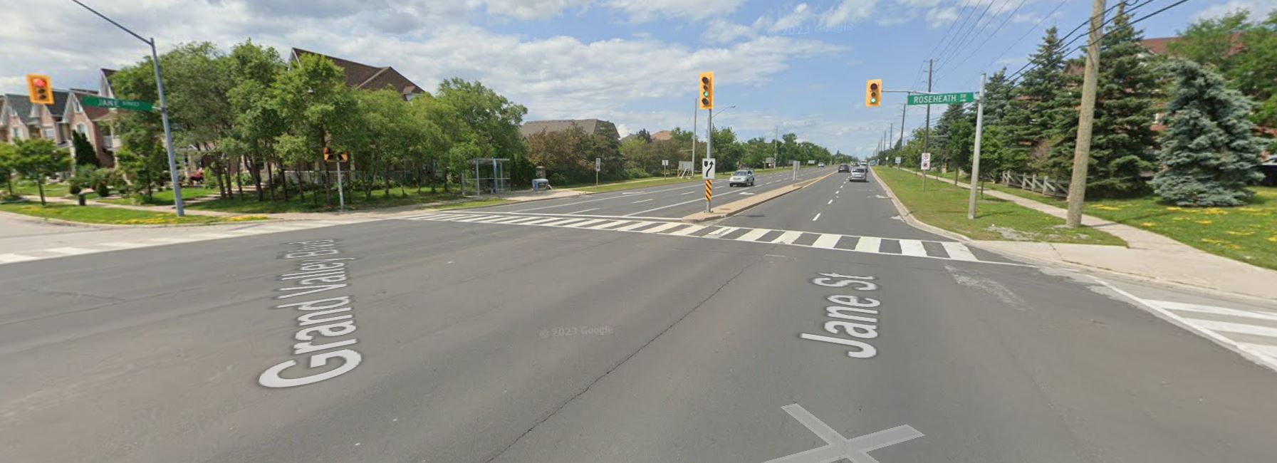 It’s hard to communicate in a blog how much of a difference the short crossing makes, but to put it into perspective, here’s a comparable crossing at Jane Street and Roseheath Drive in Vaughan, not too far north of Kipling.